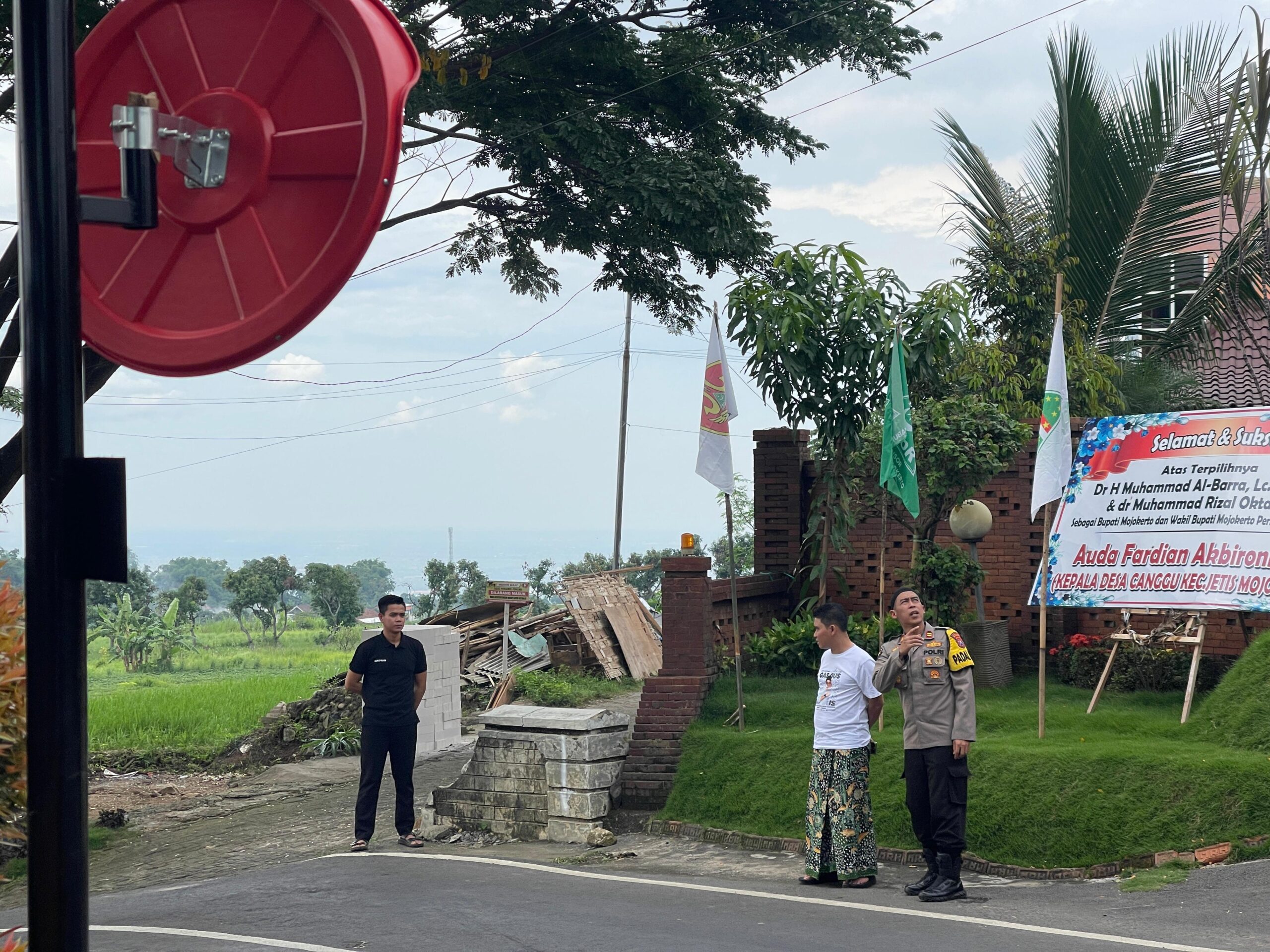 Mojokerto//jatimbangkit.com – Dalam rangka meminimalisir kecelakaan lalu lintas didaerah rawan laka lantas Kapolsek Pacet Polres Mojokerto Polda Jawa Timur IPTU M.K. Umam bekerja sama dengan Pihak baterai alkaline dari Malang bersama anggota Patroli Polsek memasang kaca cembung atau convex mirror dibeberapa wilayah hukum Polsek Pacet yakni Kecamatan Pacet, Kabupaten Mojokerto, Sabtu (28/12/24)