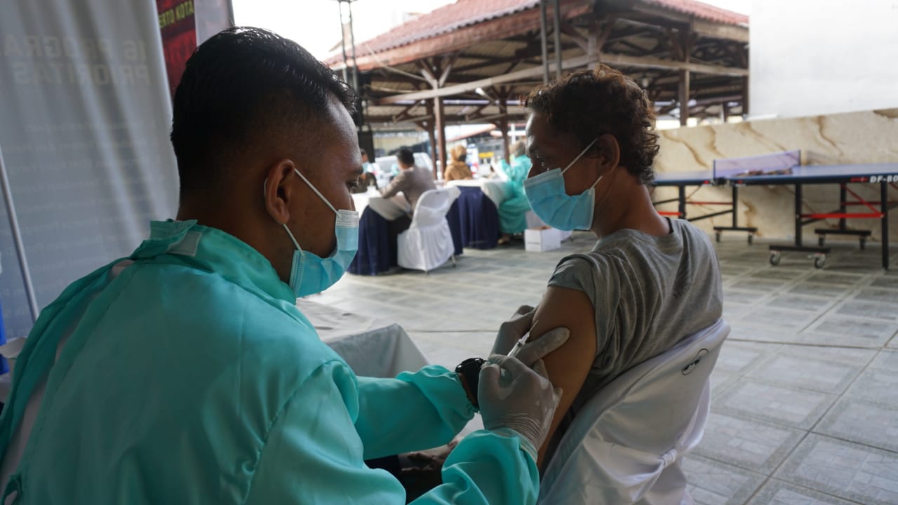 jatimbangkit.com, Mojokerto – Demi percepatan vaksinasi, Polresta Gelar vaksinasi massal di Gerai Vaksin Presisi, Sabtu (10/7/2021). Serbuan vaksinasi nasional TNI/Polri bersama Dinas Kesehatan (Dinkes) guna Akselerasi Vaksinasi di wilayah hukum Polresta Mojokerto yang diterima sebanyak 648 orang.