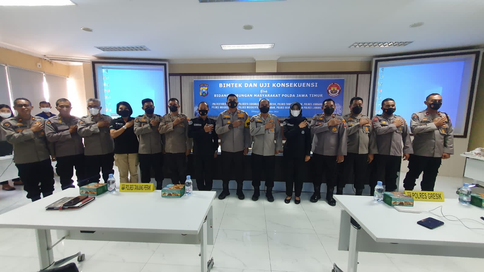 jatimbangkit.com // Sidoarjo – Sebagai Badan publik, Kasi Humas Polresta Mojokerto selaku PPID (Pejabat Pengelola Informasi dan Dokumentasi) melaksanakan Bimtek dan Lembar uji Konsekuensi oleh Bidhumas Polda Jatim di Polresta Sidoarjo bersama 10 Polrestabes/res lainnya. Senin (19/09/22)