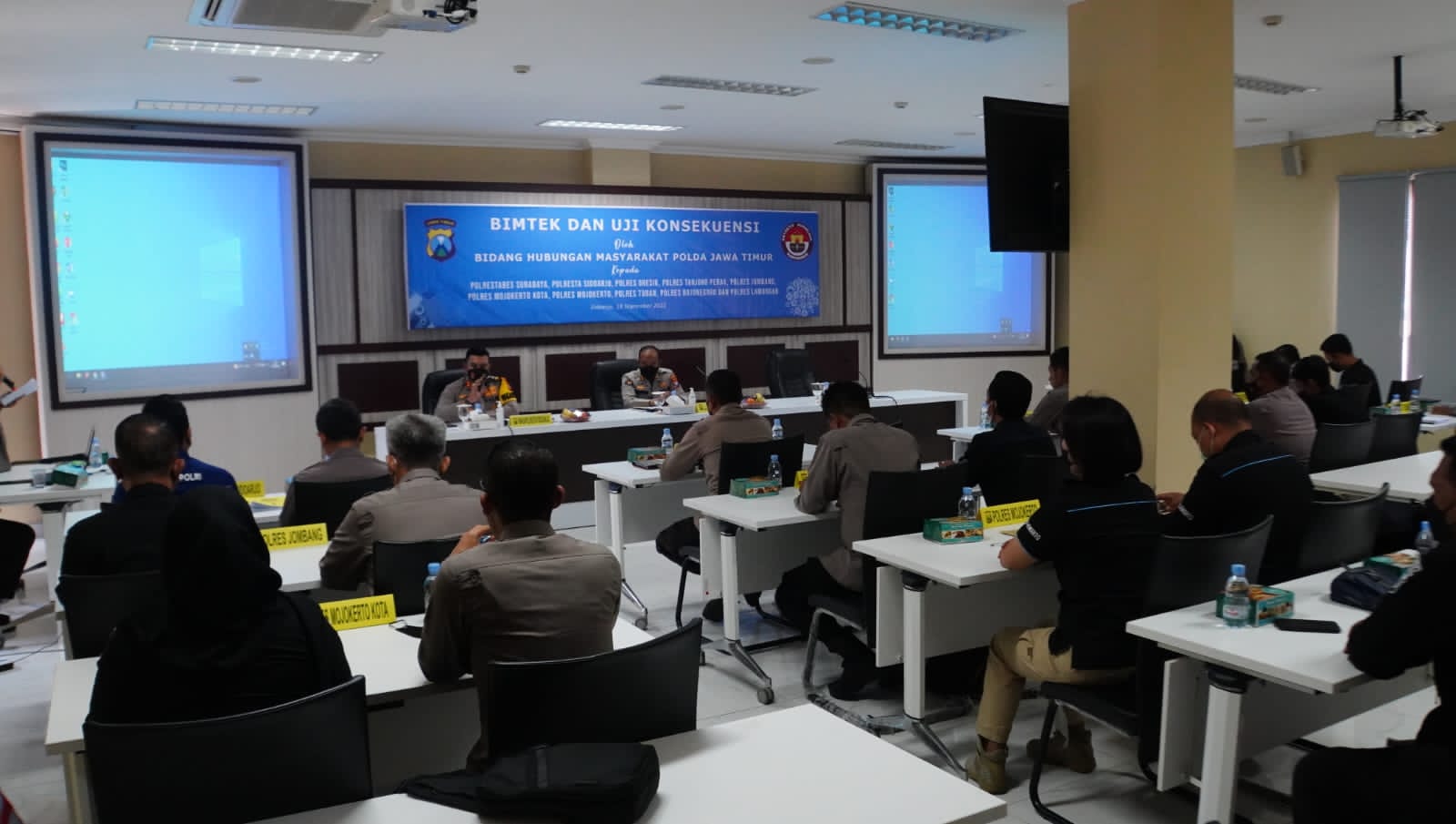Setelah menerima materi, Kasi Humas Polresta Mojokerto IPTU MK Umam melaksanakan Uji Konsekuensi langsung dengan Ketua Tim dan penguji di Ruang Rapat Lt.III Polresta Sidoarjo bersama Kasi Humas dari Polrestabes Surabaya, Polresta Sidoarjo, Polres Tanjung Perak, Polres Gresik, Polres Lamongan, Polres Tuban, Polres Bojonegoro, Polres Jombang, Polres Mojokerto