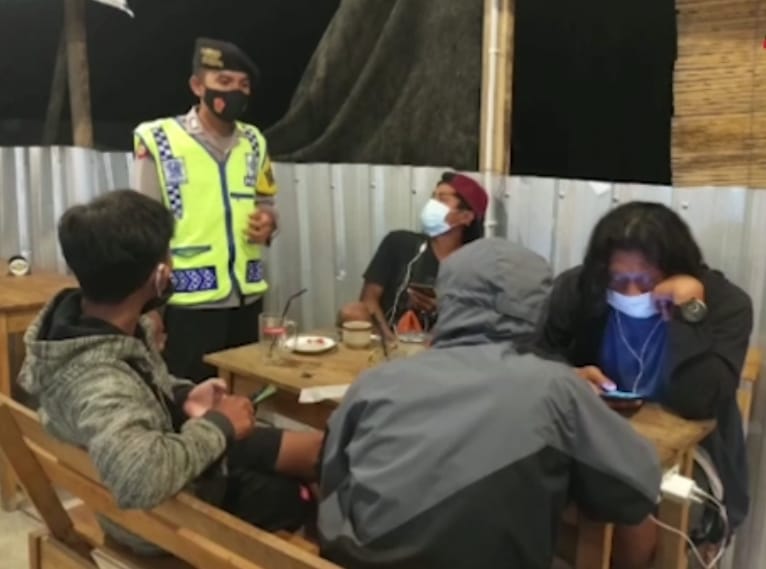 “Dalam Operasi Yustisi Kali Ini Petugas Membagikan Masker Kepada Pengunjung cafe Dan Menghimbau Agar Selalu Menerapkan Prokes Mengingat Covid Masih Belum Hilang Diwilayah Hukum Polsek Dawarblandong Polresta Mojokerto”. Tambah Kapolsek