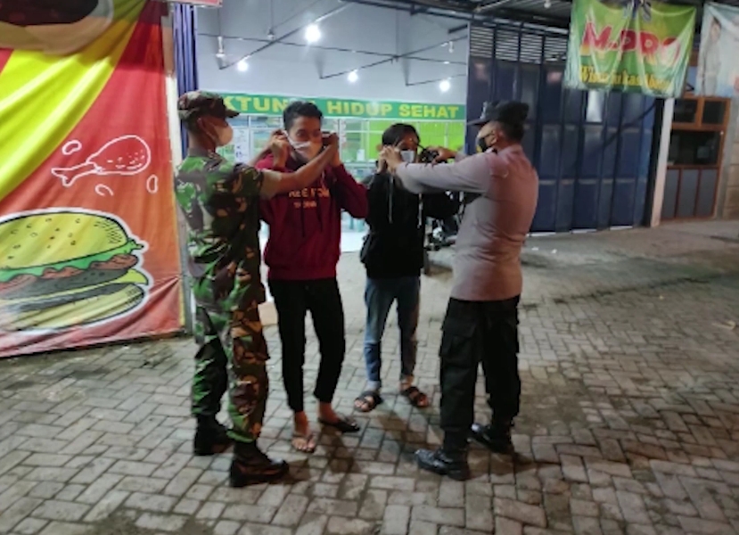 “Dalam Operasi Yustisi Kali Ini Petugas Membagikan Masker Kepada Pemuda Yang Berada Di Warkop Dan Menghimbau Agar Selalu Menerapkan Prokes, Total 100 Masker dibagikan”. Tambah Kapolsek