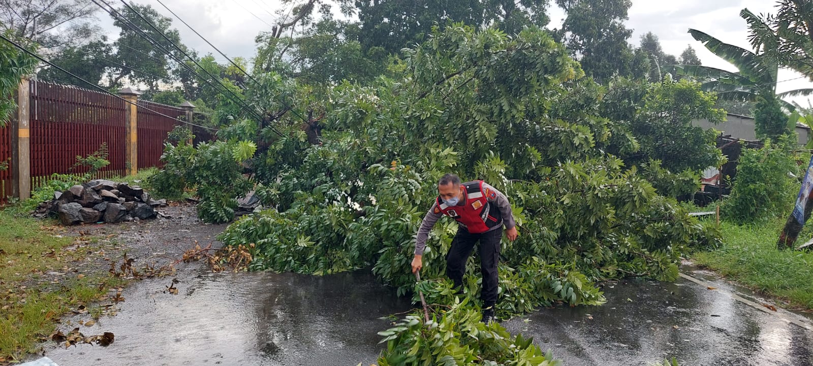 Sejumlah pohon tumbang tersebut berada di empat titik berbeda, diantaranya di lingkungan Kedungkwali, Gedongan, Sentanan dan Jl. Jatikulon. Hujan disertai angin kencang tersebut terjadi sekira pukul 15.41 WIB.