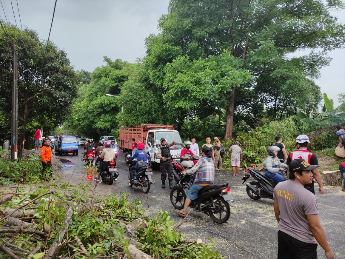 “Tidak ada korban luka maupun jiwa pada kejadian ini, karena saat pohon tumbang sekitar pukul 15.41 WIB kondisi jalan tidak begitu ramai kendaraan,”ujar IPTU Umam