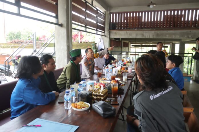 Mojokerto//jatimbangkit.com – Kapolres Mojokerto Polda Jawa Timur AKBP Andi Yudha Pranata sambung tali silaturahmi dengan perwakilan mahasiswa yang tergabung dalam PMII, HMI, GMNI, dan IMM bertempat di kafe SSS Jl. Pacet polsek, Made, Pacet, Kec. Pacet, Kabupaten Mojokerto, selatan Mapolsek Pacet, Sabtu (14/02/26)