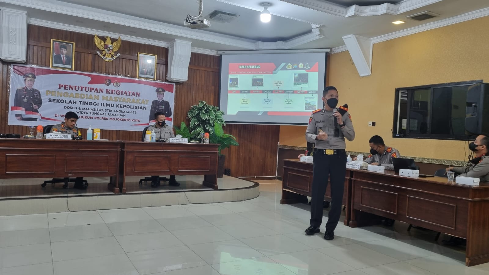 jatimbangkit.com, Mojokerto – Empat hari berlalu begitu cepat Lima Mahasiswa STIK-PTIK angkatan 79/ WTP melaksanakan Pengabdian Masyarakat (Dianmas) di Wilayah Hukum Polresta Mojokerto, diakhiri dengan penutupan dianmas yang dipimpin Kapolresta Mojokerto AKBP Rofiq Ripto Himawan, S.I.K., S.H., M.H di Aula Prabu Hayam Wuruk. Kamis (17/3/2022)